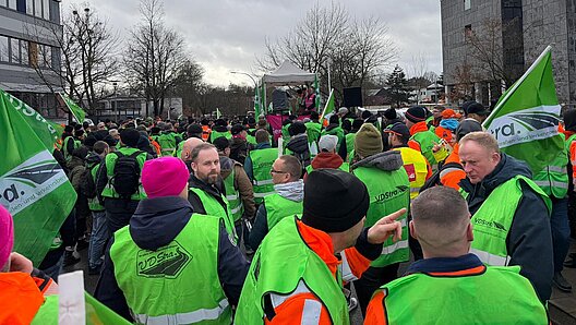 Kurz vor der dritten Verhandlungsrunde in der Einkommensrunde mit der Autobahn GmbH haben am 23. Februar 2026 die Beschäftigten in Hamburg gestreikt - darunter auch zahlreiche Teilnehmer aus Mecklenburg-Vorpommern, die teilweise aus Straßenmeitereien kurz vor der polnischen Grenze angereist waren.