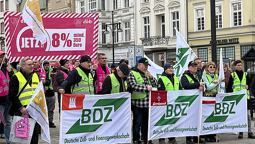 Rund 300 Kommunalbeschäftigte, Straßenwärter, Beschäftigte von Zoll und Bundeswehr sowie aus anderen Bereichen des öffentlichen Dienstes in Mecklenburg-Vorpommern haben heute in Rostock lautstark…